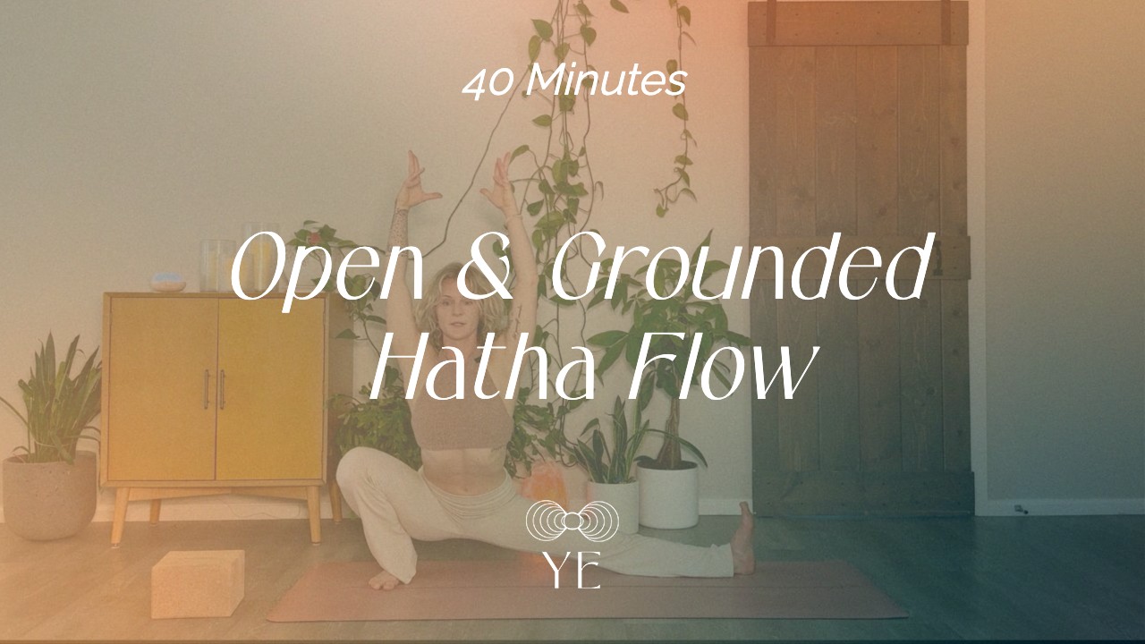 Open & Grounded Hatha Flow is a 40-minute, steady-paced practice designed to help you drop into your body, open key areas of tension, and reconnect to your center.